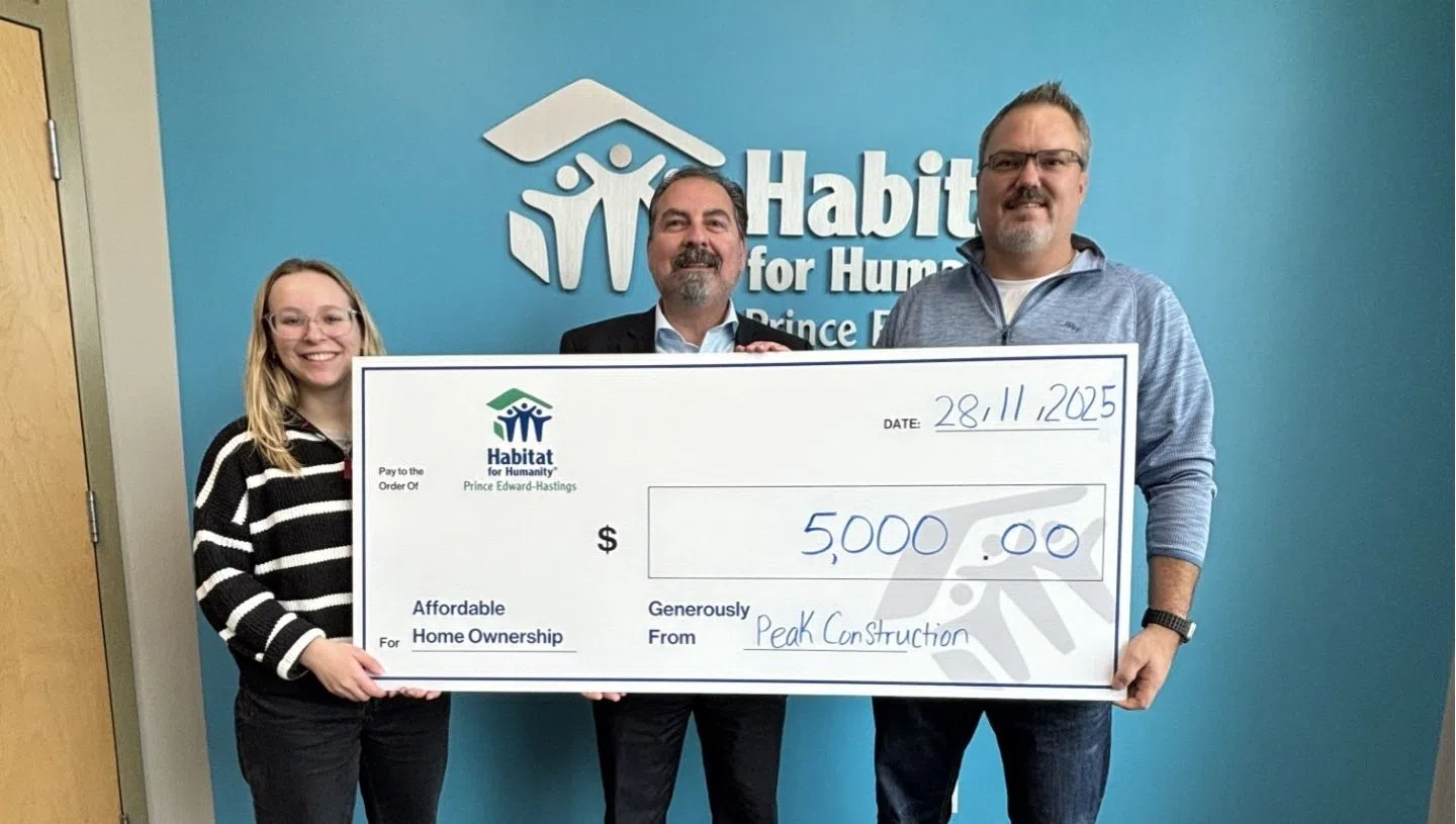 Habitat for Humanity Prince Edward-Hastings receives $5,000 donation from Peak Construction